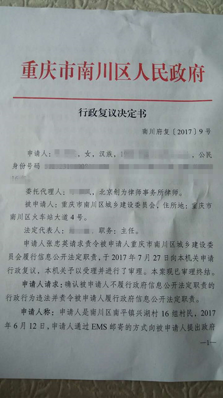 下一篇:重庆市南川区人民政府复议胜利