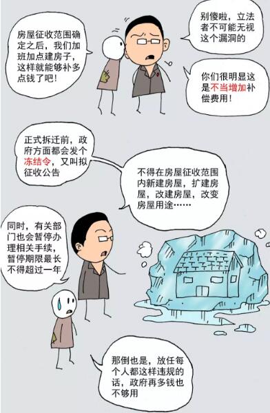 很多时候,被拆迁人就正是因为搭建临时性建筑被拆迁方“盯”上了,拆迁方“报复打击”,将非出于“冻结期”加盖的建筑问题扩大化,声称房屋整体是违法建筑,因而恐吓被征收人“现在不走,将来一分没有”使其受骗被迫接受低价补偿。