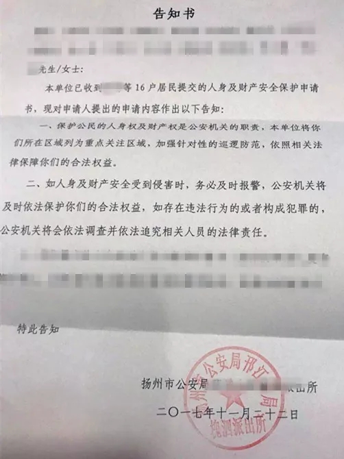 下面这个告知书是创为律师在经办案件过程中申请的一个法律程序,而这张告知书也给大家吃了一个“定心丸”,争取在危险的拆迁环境下可以帮助被拆迁人多设立一份安全保障。